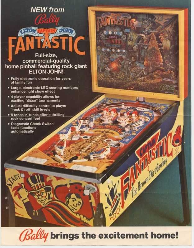 The item Bally Captain Fantastic Pinball Machine is in sale since Saturday March 21 2020. The cabinet has been freshly painted. VAPS ArcadeCoin-Op Captain Fantastic Home Model Census There are 11894 members of the Vintage Arcade Preservation Society 9354 whom participate in our arcade census project of games owned wanted or for sale.