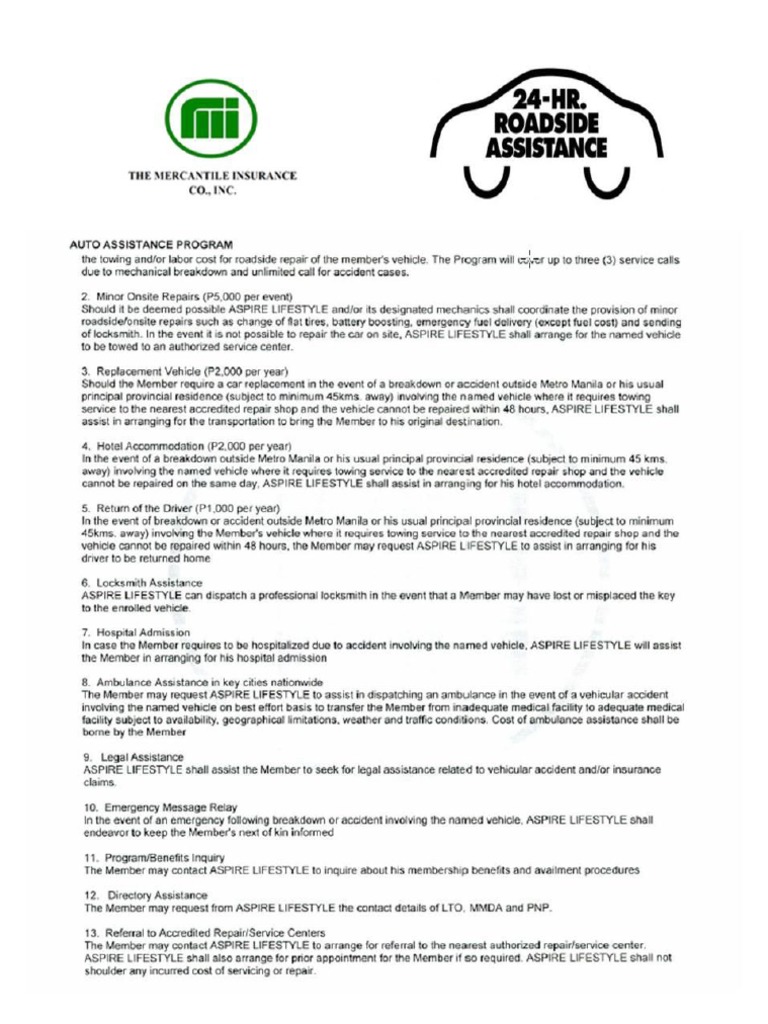 The Mercantile Insurance Co Inc 24 7 Road Assistance Pdf